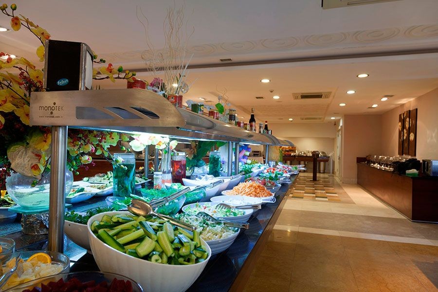 На територията на хотела: Основен ресторант, 2 a la carte ресторанта (турски, рибен, с предварителна резервация), 4 бара, дискотека (няколко пъти в седмицата), 3 открити басейна, закрит басейн (подгрява се през зимата), 2 водни пързалки, Спа център, фитнес зала, лекарски кабинет, магазини, фризьорски салон, пералня, конферентна зала.