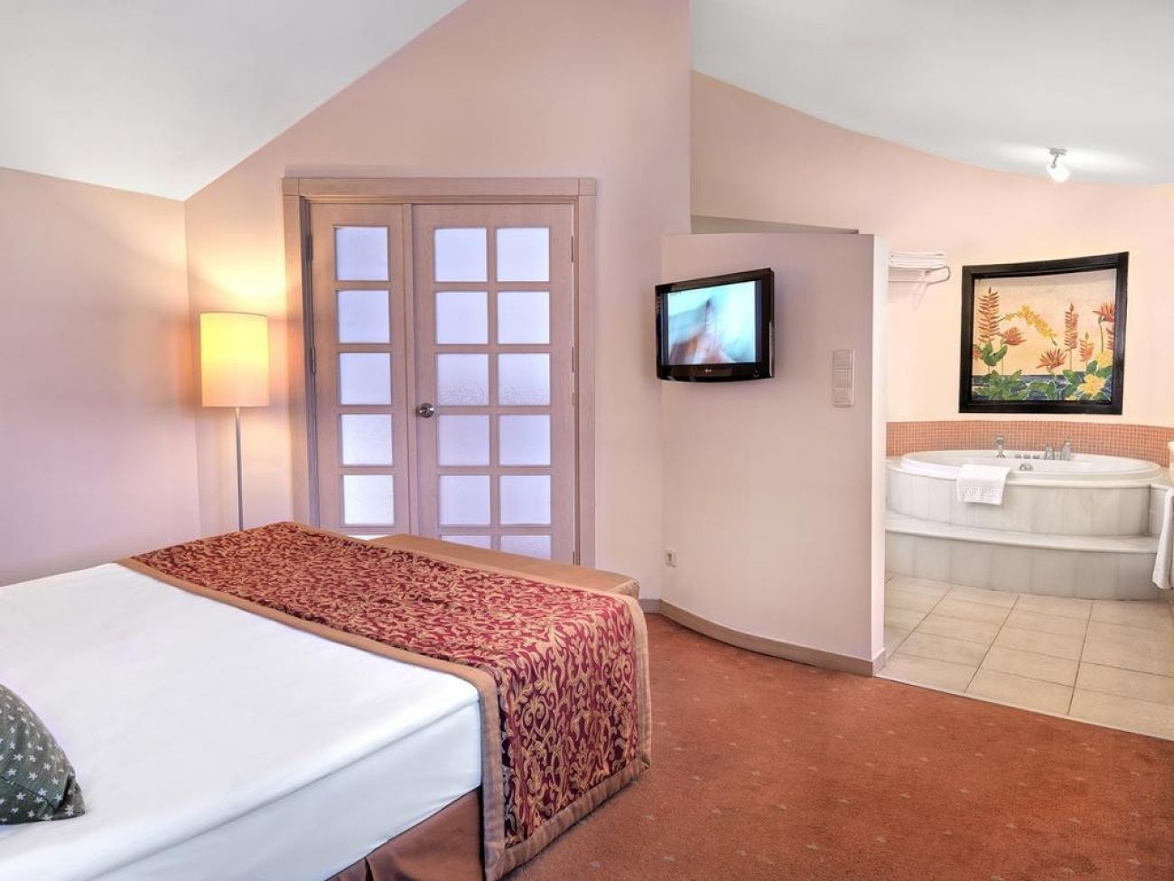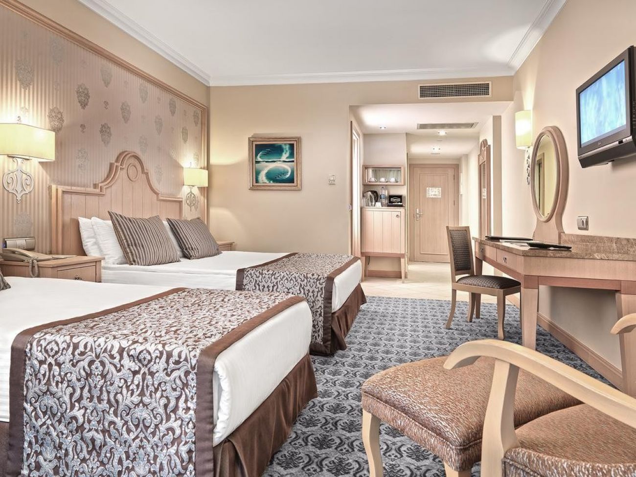 Всяка стая разполага с централен климатик, телевизор, телефон, баня с душ (клубни стаи)/вана (основна сграда), сешоар, сет за чай и кафе, халат и чехли, мини бар (бира, безалкохолни напитки, сок, кола, ханта, минерална вода - ежедневно зареждане), сейф(безплатен), балкон, WI-FI (безплатен), под - мокет (Main Building); ламинат (Club).