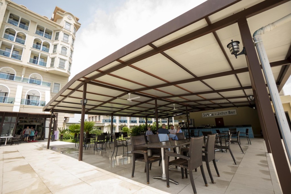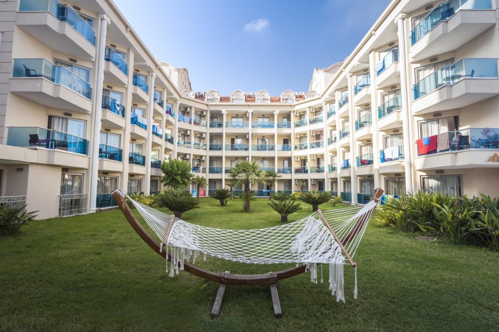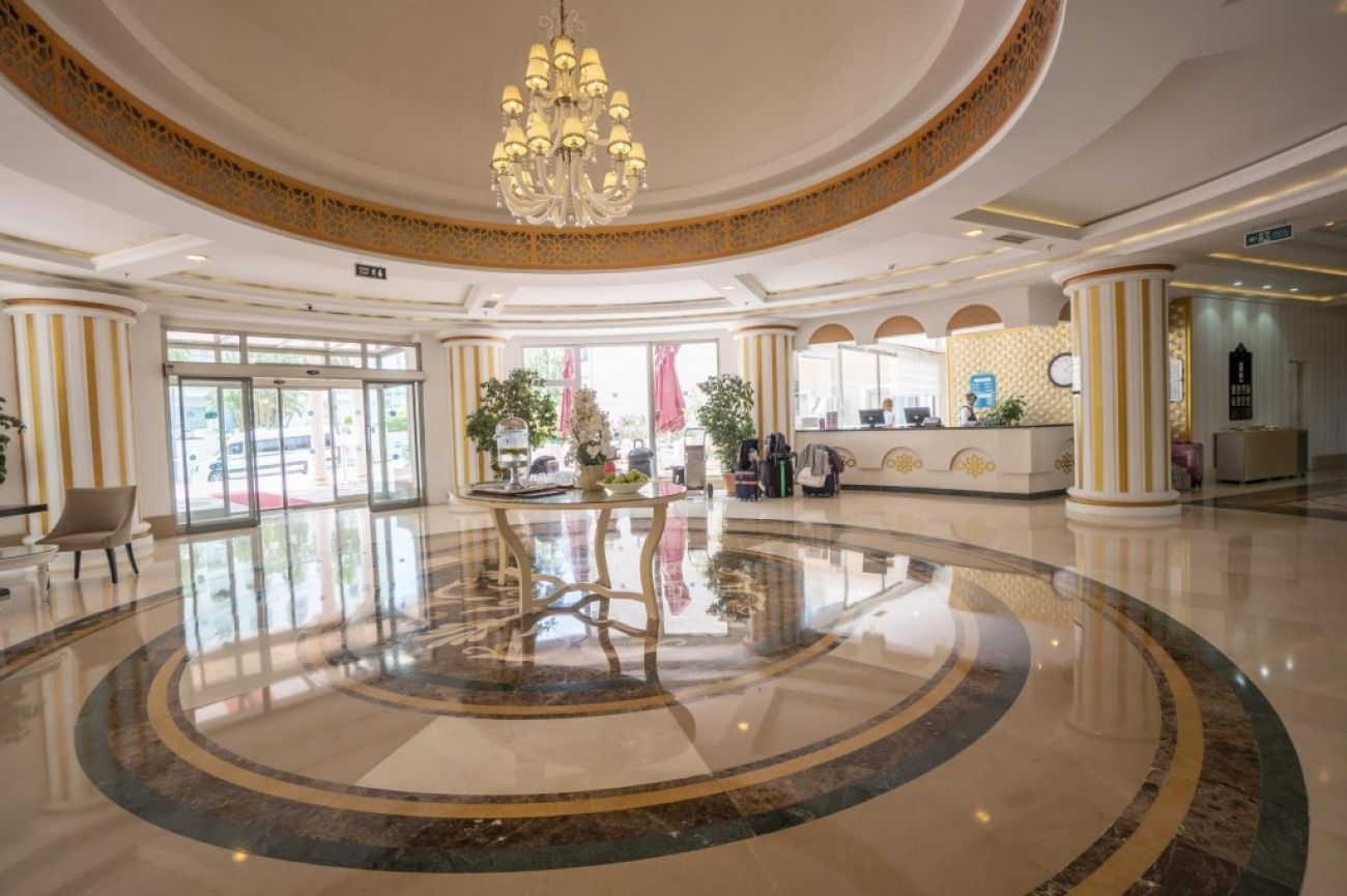 На територията на хотела: Денонощна рецепция, два открити басейна, един от които с 4 водни пързалки, вътршен басейн, основен ресторант, открита тераса, снек ресторант, 3 бара, 3 А Ла Карт ресторанта ( Рибен, турски и италиански – с предварителна резервация, срещу доплщане), СПА център, фитнес зала.