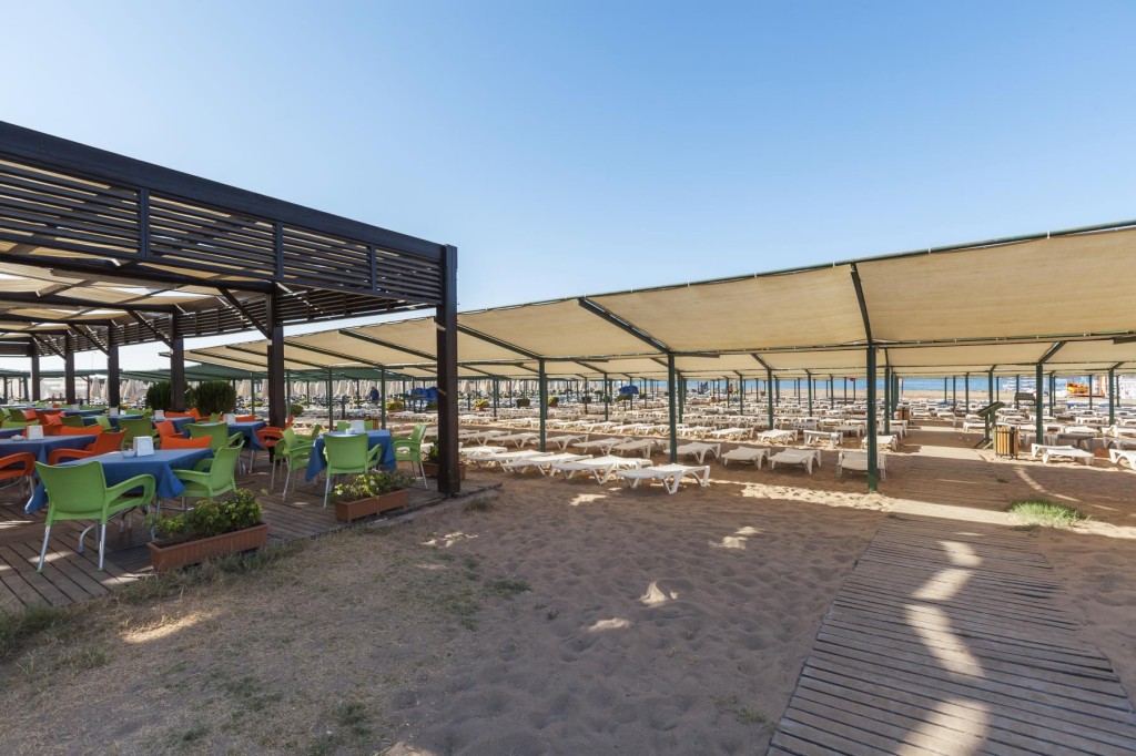 Плаж: Плажът е пясъчно-чакълест и е на около 250 м от хотела. Разполага с шезлонги и чадъри, кърпи за плаж и басейн, волейболно игрище, душ/WC, съблекални и снек бар. Сервират се алкохолни, топли и студени напитки, бюфет със салати и плодове, богата закуска и обеден бюфет.