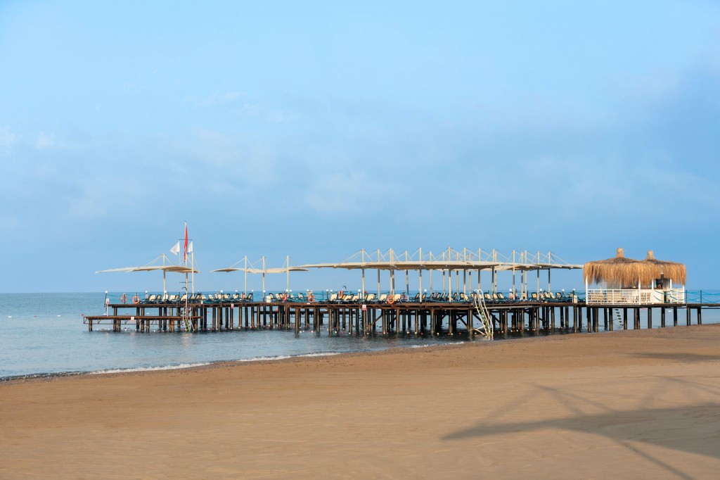 Плаж: Собствен пясъчно-чакълест плаж, първа линия от хотела. Дължината на плажа е 300 м. Шезлонги, чадъри, матраци, плажни кърпи са безплатни. Вход в морето - пясък, камъчета. Душ, кабини за смяна, спасител. Павилиони на плажа (срещу допълнително заплащане).