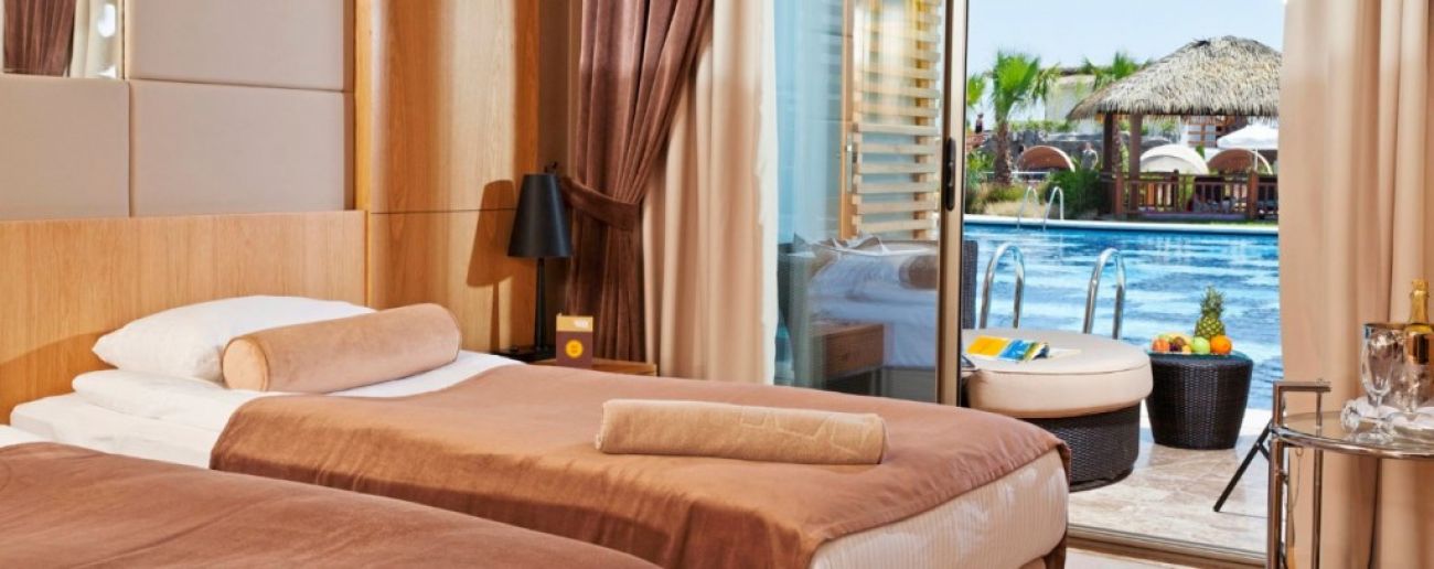 За романтично бягство под блажени палми препоръчваме TUI BLUE Belek като първокласно място на плажа. Спокойният хотел на турската Ривиера е приспособил първокласното си обслужване специално, за да отговори на нуждите на възрастна публика. На плажа и край просторния външен басейн тропическите шезлонги ви канят да се отпуснете и да си починете. Белек(голф капиталът на Турция) се намира на 10 километра от хотелът, с достъп до различни видове градски транспорт, за да можете да разглеждадете градът. Също така, хотелът е на около 50 километра от летището.