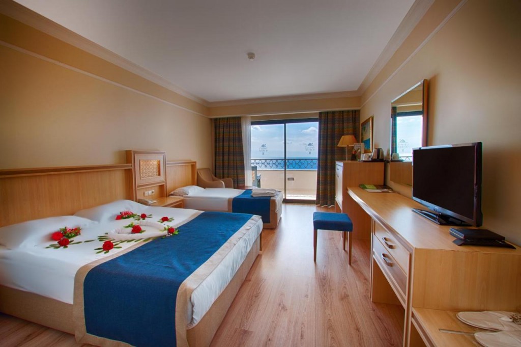 Utopia World се намира на върха на скала на крайбрежието на град Алания и предлага гледка към Средиземно море. На разположение са множество съоръжения, сред които отличен със Син флаг пясъчен плаж с 2 кея, открити басейни с акваплощ от 15 декара и СПА център с традиционна турска баня. Utopia World предлага 5-звездни помещения за настаняване в град Syedra. Просторните стаи в хотел Utopia World са модерно обзаведени и имат излаз на самостоятелни балкони. Всички те разполагат със сателитна телевизия, а някои са с отделна всекидневна и луксозна хидромасажна вана. Всички стаи се радват на гледка към морето или планината. Ресторант Monte предлага италиански ястия, а ресторант Tugra се намира на място и поднася турска кухня. В определено време от деня се предлагат сладкиши и сладолед. Хотелът разполага и с традиционна шатра „йорюк”, в която се приготвят палачинки. Срещу допълнителна такса можете да се отдадете на различни водни забавления като каране на лодка-банан, ветроходство и водни ски в стил ринго. Безплатно се предоставят канута и велосипеди. На разположение са плажни чадъри, шезлонги и плажни кърпи. Популярните атракции в близост включват елегантната търговска улица Keykubat Caddesi и известната пещера „Дамлаташ”, която е на 18 километра от хотела. Яхтеното пристанище на Алания се намира само на 22 километра. За гостите са осигурени безплатен Wi-Fi и безплатен паркинг.
