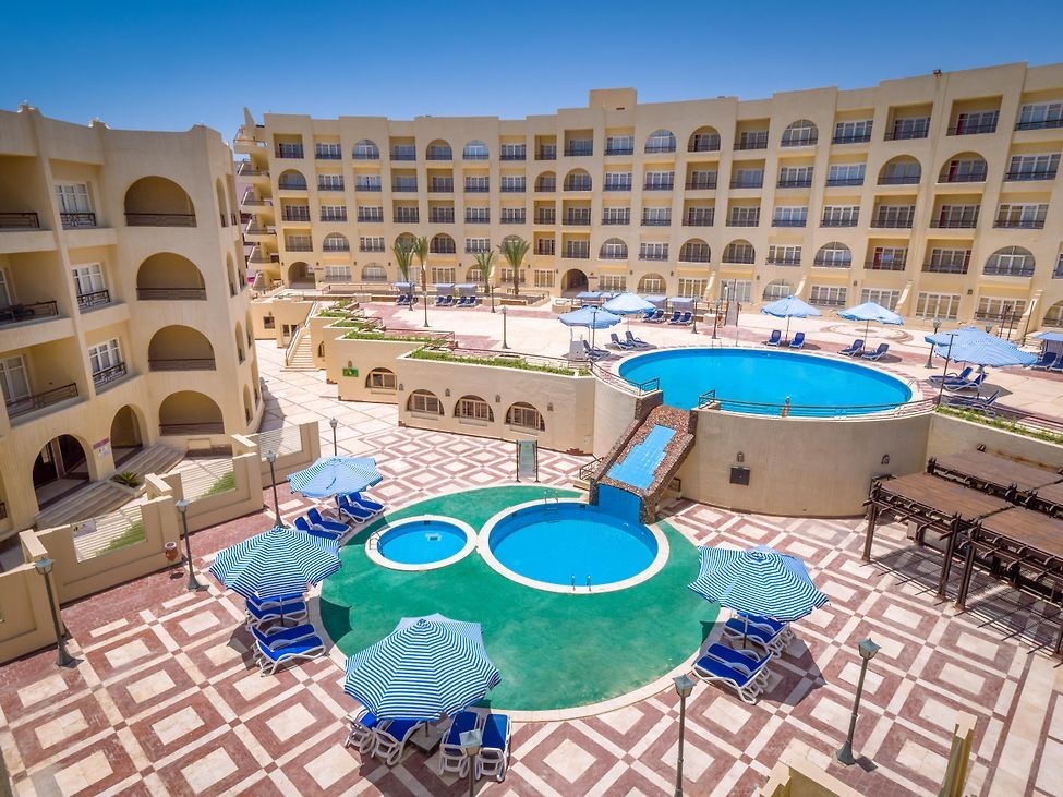 Разположение: Намира се на 12 км от летище Хургада, на 3 км от центъра на град Хургада, в района Дахар, на 100 метра от брега на морето и свързан с тунел със съседния хотел от същата верига SUNNY DAYS PALMA DE MIRETTE RESORT & SPA. Построен през 1998 г., последно реновиран през 2018 г.