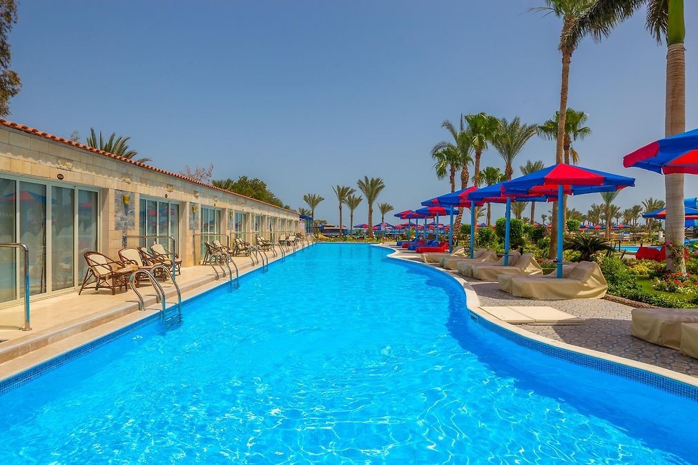 Местоположение: Хотелът се намира на брега на Червено море, на първата брегова линия в района Ел Мамша в Хургада, само на 12 км от центъра на града и на 5 км от летище Хургада.