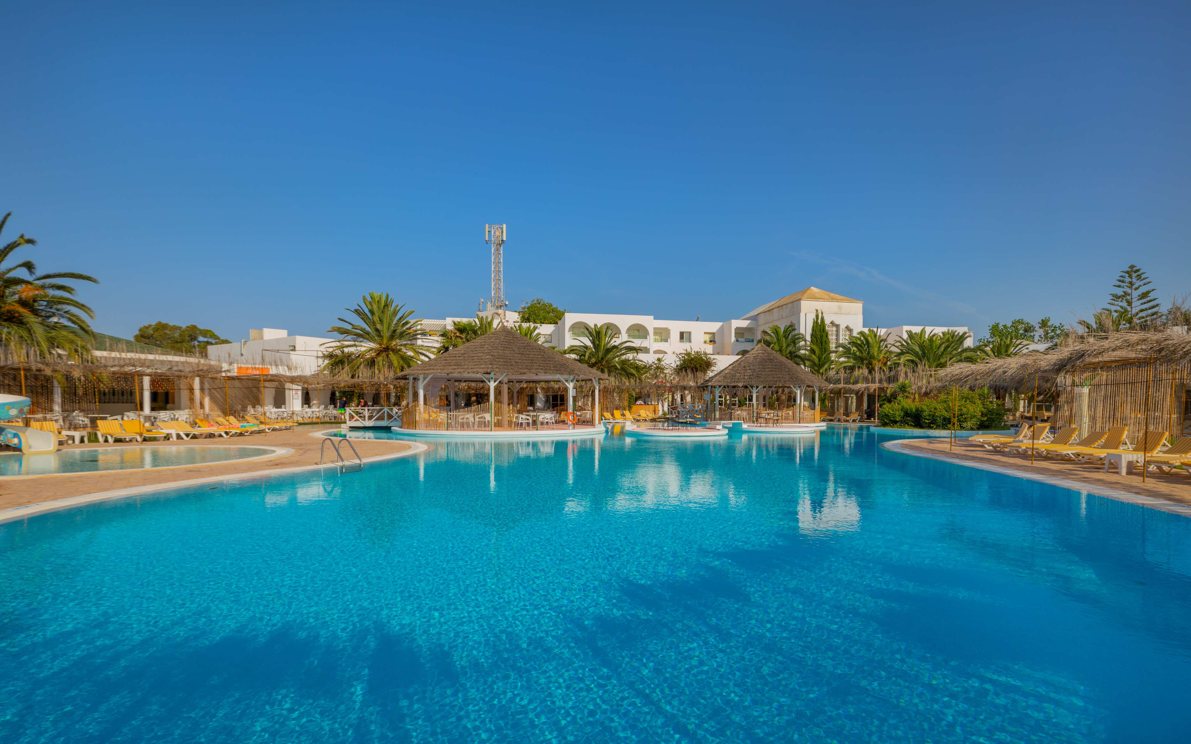 Основен ресторант, 1 а ла карт рестоирант (тунизийски- срещу заплащане/с предварителна резервация, съгласно концепцията на хотела/1 безплатно посещение при минимум 7 нощувки), 4 бара, мавританско кафене, 2 откирти басейна, водни пързалки, СПА център, магазини, паркинг, обменно бюро.