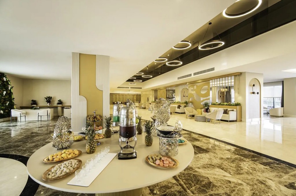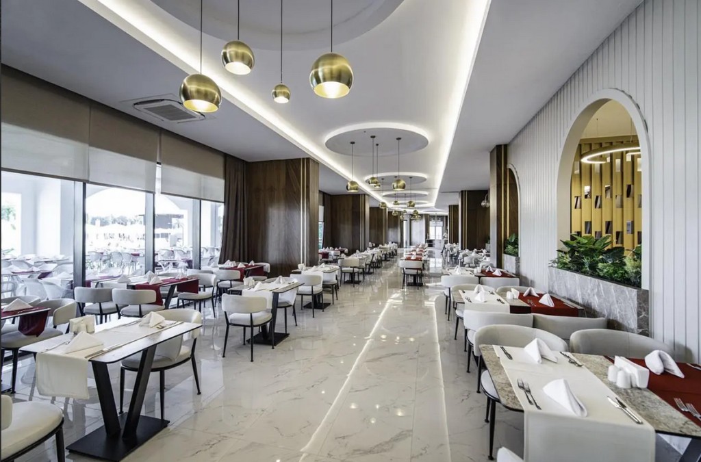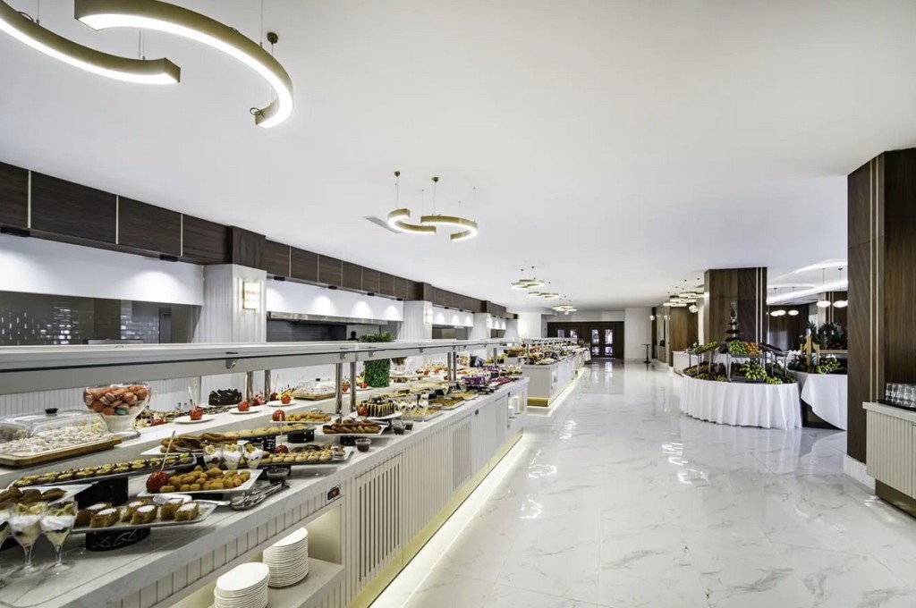 Основен ресторант, 2 а-ла карт ресторанта (рибен и турски), 5 бара, сладкарница, аквапарк, открит и закрит басейн, диско, фитнес, мини-клуб, мини-диско, анимация, СПА център, салон за красота, игрална зала, конферентна зала.