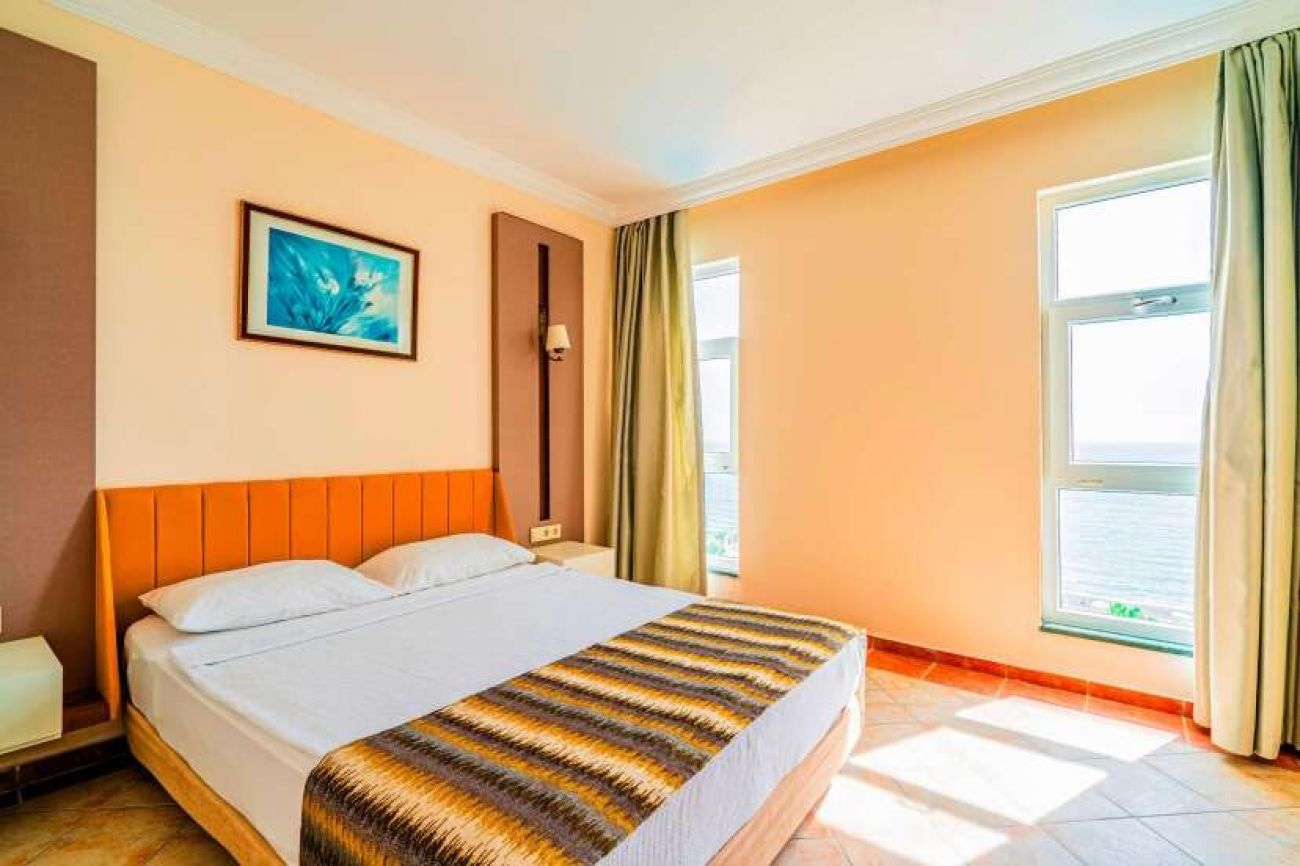 Разположение: Намира се на 135 км от летище Анталия, на 140 км от центъра на Анталия, на 12 км от центъра на Алания, на 50 м от плажа. Обща площ на хотела 13.100 м2.