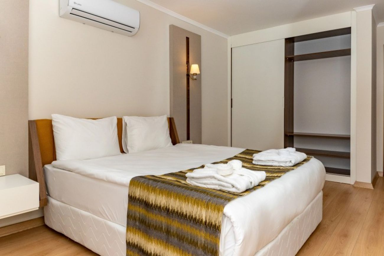В стаите: Хотелът разполага със следните типове стаи: Standard Room Side Sea View (25 m2), Standard Room Land View (25 m2), Eco Family Room (40m2), Family Room (40 m2). Всички стаи са оборудвани с електронна система за заключване, климатик, мини бар (зарежда се с безалкохолни напитки веднъж при пристигане), сет за кафе и чай , LCD телевизор, сейф, телефон, баня с душ, сешоар, балкон.