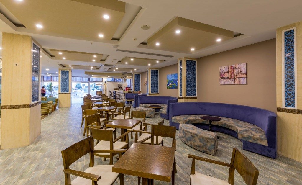 Основен ресторант, 3 бара, открит и закрит басейн, 3 водни пързалки, фризьор, 2 конферентни зали, Безплатни услуги: турска баня, сауна, аеробика, плажен волейбол, тенис ракети под наем, дартс, дискотека (напитки - платени), скуош, кану, безмоторни водни спортове. Платени услуги: Масаж, парна баня, билярд, осветление тенис корт, Интернет кафе, моторни водни спортове.