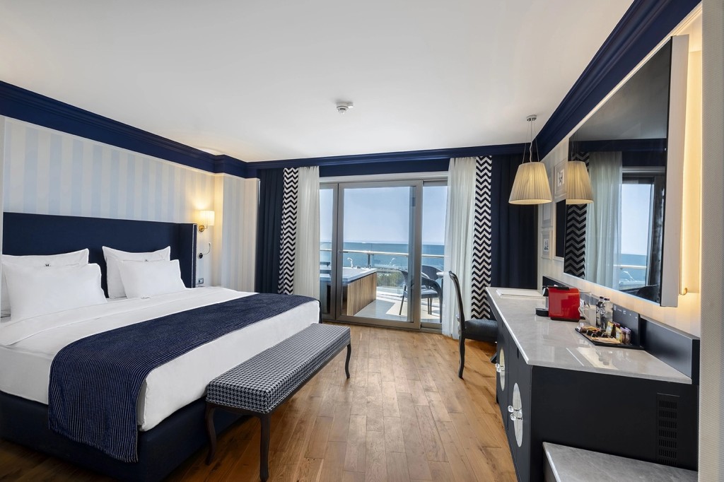 Хотелът разполага с общо 167 стаи, от които 84 делукс стаи: Deluxe room land view (изглед суша - 36 м2), Deluxe Room Sea View (изглед море - 36 м2), 72 фамилни стаи: Family room land view (изглед суша, 2 спални, 1 баня - 42 м2), Family room sea view (изглед море, 2 спални, 1 баня - 42 м2),11 Superior Suite (2 спални, 1 баня - 73 м2).