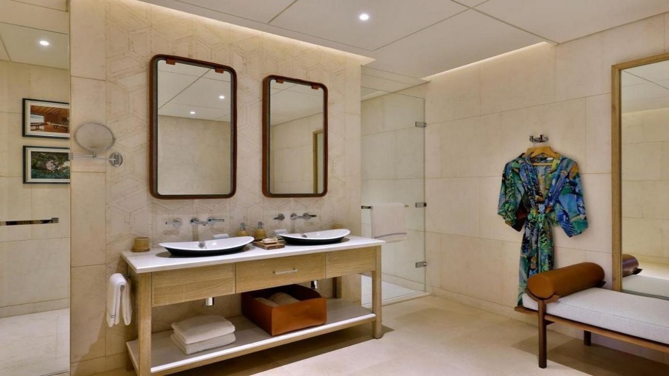 - Едноспален апартамент с гледка към океана: С площ 94 кв. м. и капацитет до 3 възрастни. Стаята е оборудвана със спалня, стилна всекидневна с маса за хранене и разтегателен диван, тераса с кушетка. Тази стая се намира на брега на морето и разполага с голяма тераса с кушетка, всекидневна с маса за хранене и личен бар. Специалните удобства включват безплатен Wi-Fi, удобства за приготвяне на кафе / чай и баня.