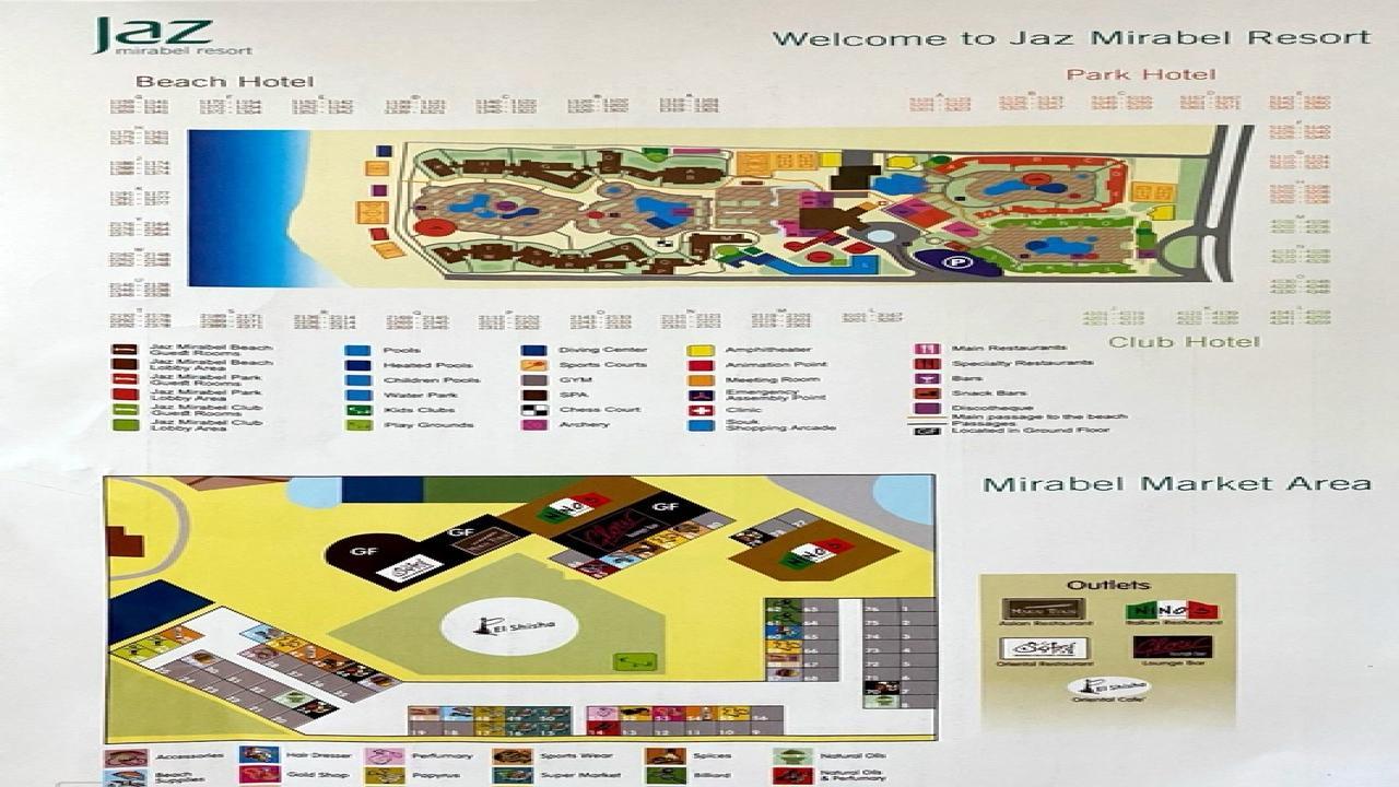 Jaz Mirabel Park 5* се намира в спокойната част на Шарм ел-Шейх, до залива Набк, на 600 м от брега на морето. Центърът на Шарм ел-Шейх е на 13 км, а международното летище е на 12 км от хотела. Хотелът предлага редовни автобусни трансфери до залива Наама.