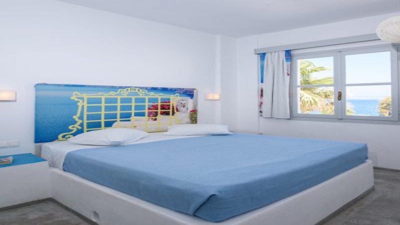 RK Beach Hotel постига красив баланс от комфорт, лукс и стил. Всички стаи за гости са проектирани да въплъщават съвременна минималистична островна естетика, като същевременно остават верни на традиционния характер и архитектура на Цикладските острови. Предлагат се всички съвременни удобствада, които ще осигурят пълен комфорт. Стаите разполагат с климатик, сателитна телевизия, хладилник, телефон, сешоар, сейф, безплатен Wi-Fi, самостоятелна баня, тоалетни принадлежности, кърпи за басейн, балкон или тераса. Супериорни стаи: със собствено външно джакузи.