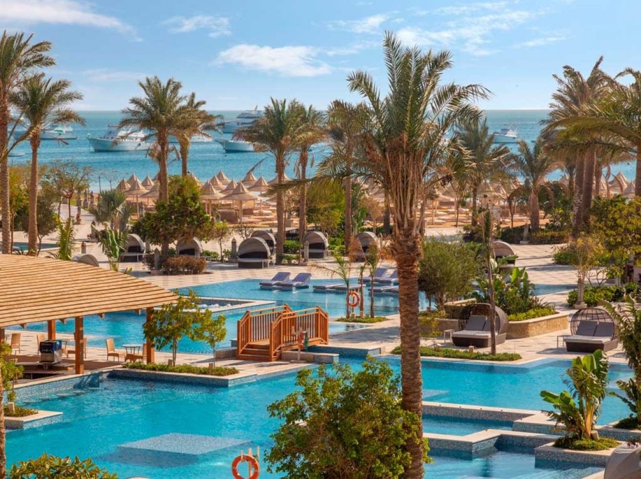 Разположение: Хотелът се намира на около 3-5 км от международното летище Хургада и на 10 км от центъра на града. Разположен е директно на пясъчен плаж в сърцето на главната туристическа алея на Хургада.