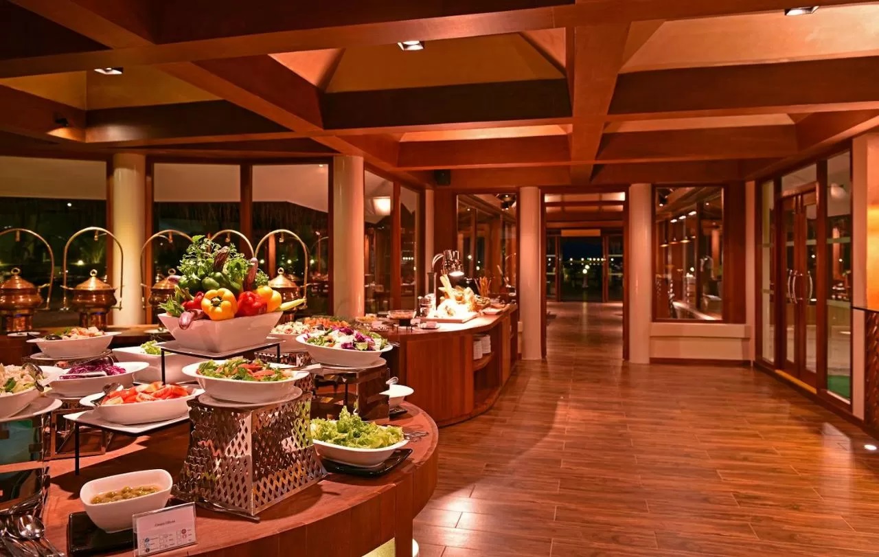 се насладете на кулинарни специалитети от международната кухня или леки закуски. Изберете от разнообразието прясна морска кухня, приготвена по Ваш вкус, докато се наслаждавате на постоянно менящите се цветове на океана. Сред останалите изкушаващи възможности са романтична вечеря на свещи, или ежедневни тематични вечери, предлагащи комбинация от местни и интернационални ястия.