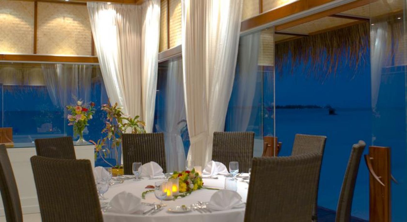 FINE - насладете се на най-пресните морски дарове в този средиземноморски ресторант, разположен над водата. KAANI - предлага европейски и азиатски изкушения, както и тематични бюфети. KUREDH BAR - отпуснете се на шезлонгите и се освежете със свежи напитки и леки, вкусни храни. AZZURO - италиански гурме ресторант и бар предлага неограничена гледка към океана и прекрасни ястия. CASTAWAY ISLAND DINING - вечеря на лодка, в която ще бъдете посрещнати с масив от малдивски специалитети, изготвени пред очите ви. COOKING SCHOOL ви предоставя възможност да разберете как се приготвят традиционните малдивски ястия.