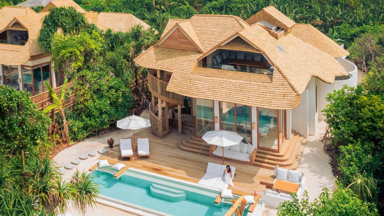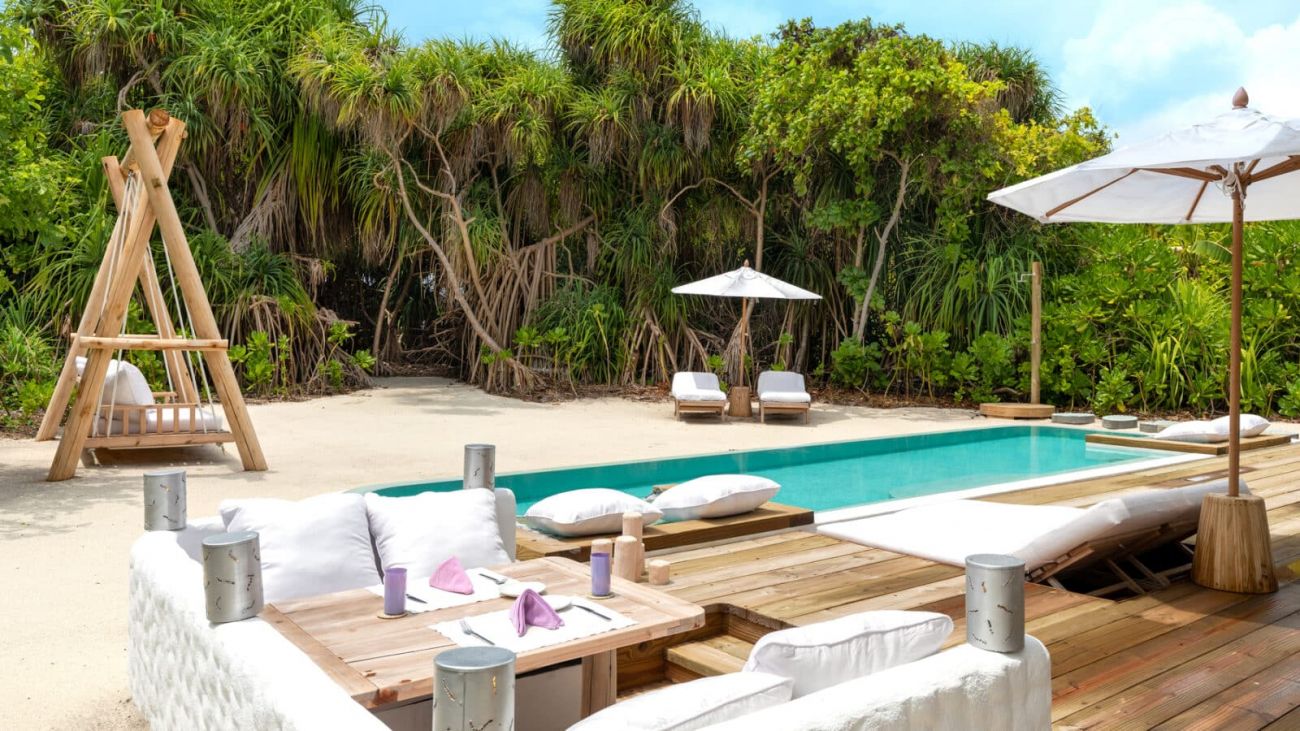 - 3 Beach Hideaway (480 кв.м.) - двуетажни крайбрежни вили с басейн с плъзгащ се покрив. На партерния етаж има спалня с двойно легло, детска спалня, полуотворена баня с вана и душ, стаи за йога и медитация, тераса с басейн с прясна вода, с хамак на вода, шезлонг и люлки на плажа. На втория етаж има тераса с развлекателна зона и фитнес зала. Максимално настаняване е 3 възрастни или 2 възрастни и 2 деца.