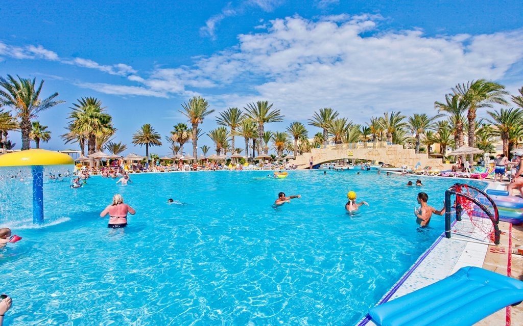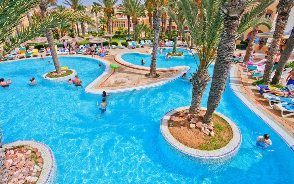 На територията на хотела: основен ресторант, италиански и тунизийски а-ла-карт ресторанти. Хотелът разполага също с развлекателен бар, лоби бар, бар край басейна и диско бар. 2 външни басейна, водни пързалки, закрит басейн (затворен от юни до октомври), СПА център, анимация, 2 тенис корта, магазин.