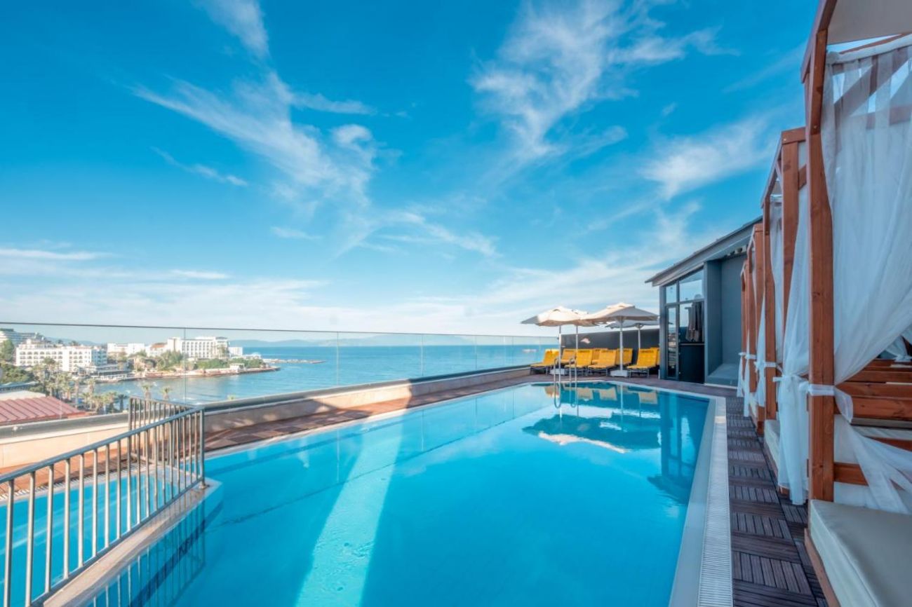 Хотелът се намира на 70 км от летище Измир, на 130 км. от летище Милас, на 3 км. от центъра на Кушадасъ, непосредствено разположен до плаж Лейдис бийч. Построен 1990 г, изцяло реновиран 2024 г/2025 г.