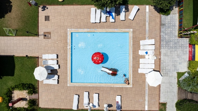 Плаж: собствен, пясъчен, на 300м от основната сграда. Чадъри, шезлонги и кърпи на плажа, както и при басейна - безплатно.