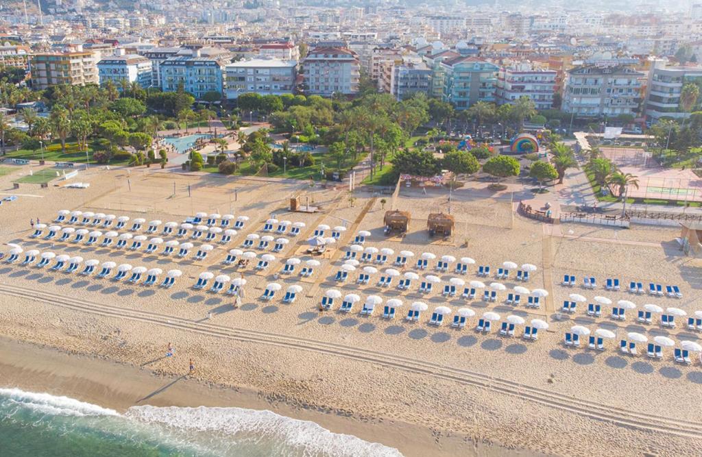 Градски, на 2 км от хотела, пясъчен. Безплатен шатъл до плажа (в определен часови диапазон). Чадъри и шезлонги при басейна – безплатно, на плажа – срещу заплащане.