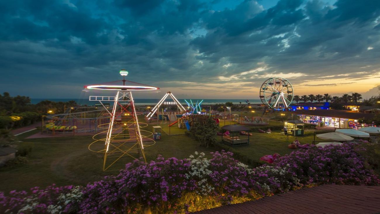 Основен ресторант, диетичен и вегетариански бюфет, 3 снек ресторанта, 3 а-ла-карт ресторанта (рибен, мексикански, китайски - с предварителна резервация и срещу доплащане), 8 бара, 3 открити и закрит басейн (отопляем през зимния сезон), дискотека, сладкарница, аквапарк с 14 водни пързалки (7 за възрастни и 7 за деца), лунапарк, мини зоопарк, СПА център, магазини, 3 конферентни зали, Wi-Fi.