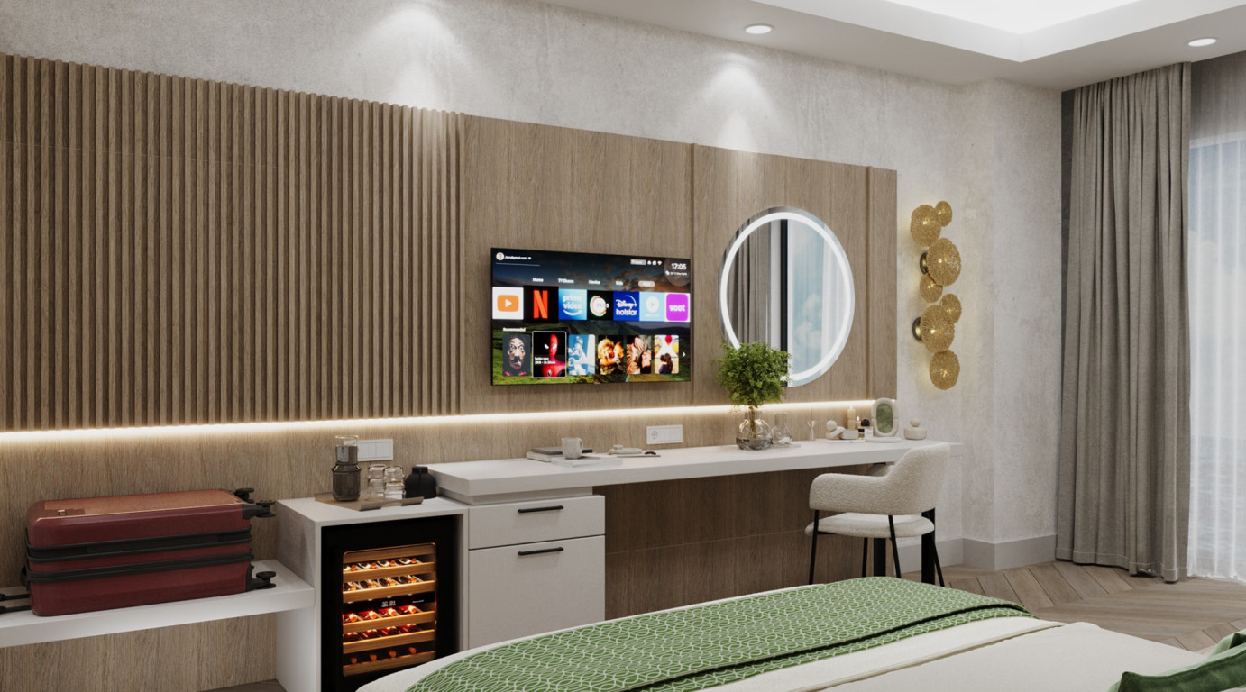 Всички стаи са оборудвани с централен климатик, 55” LCD Ultra HD Smart телевизор, телефон, тоалетка с огледало, гардероб, баня с душ/вана, сешоар, минибар (ежедневно зареждане), сет за кафе/чай, сейф (безплатен).