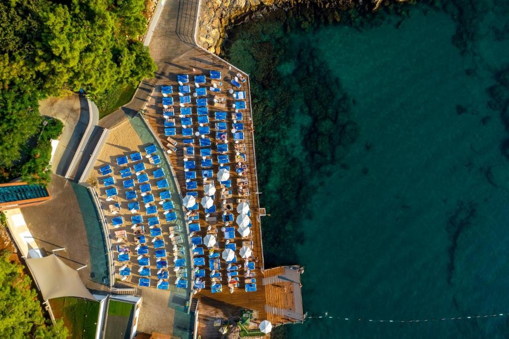 Плаж: Собствен – платформа на 3 нива. Безплатни чадъри, шезлонги, матраци и плажни кърпи.