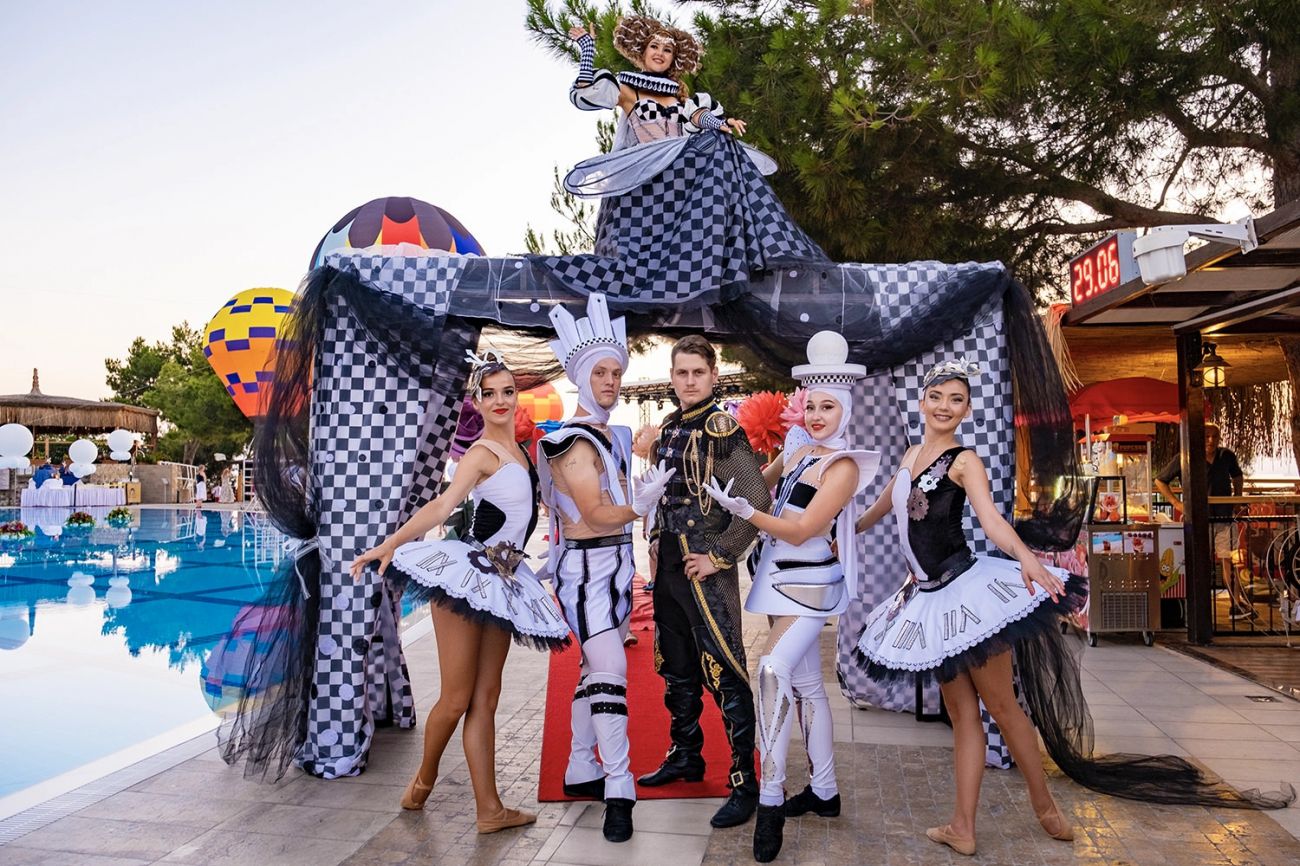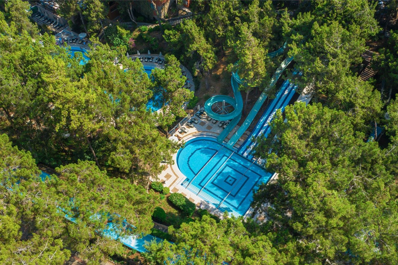 Основен ресторант, 3 а-ла-карт ресторанта (италиански, турски, рибен – срещу допълнително заплащане), 3 снек ресторанта - възможност за приготвяне на специални ястия за гости с алергии, 8 бара, сладкарница, 5 открити басейна, вътрешен отопляем басейн, аквапарк с 8 пързалки, фитнес, СПА център, магазини, 3 конферентни зали с оборудване, Wi-fi интернет – според концепцията на хотела.