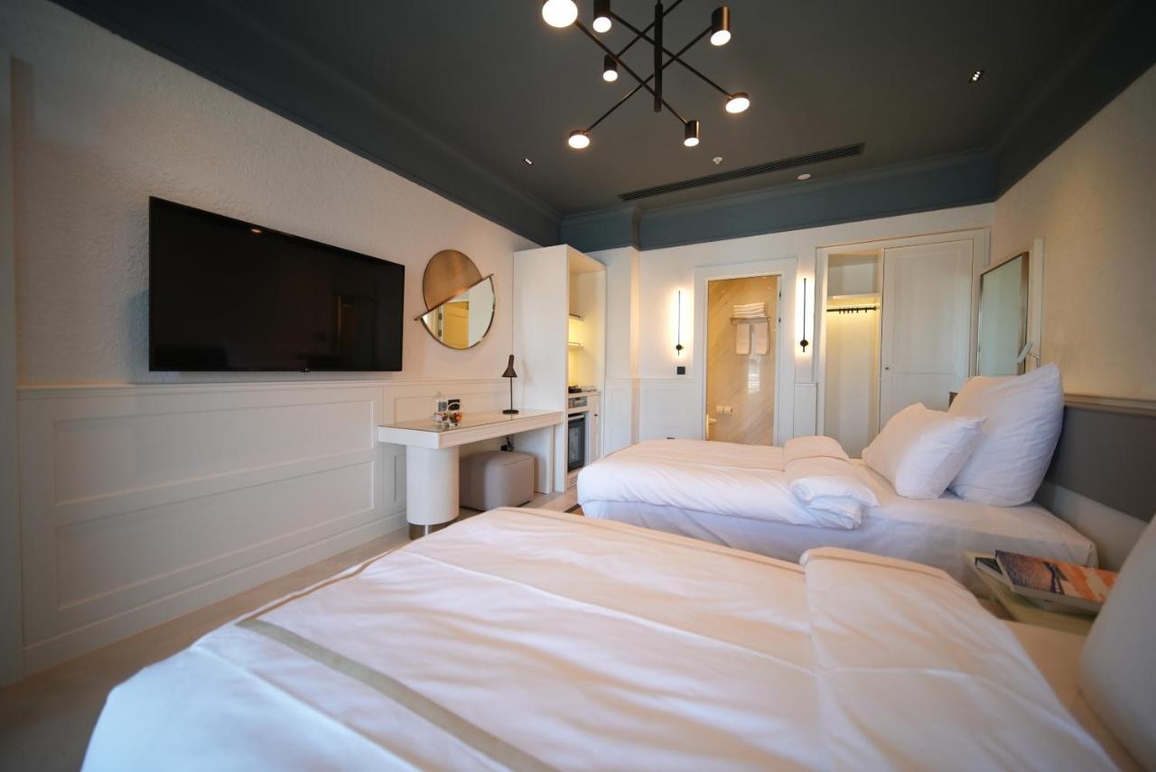 Хотелът разполага с 24 Deluxe Rooms и 10 Suites, всички с гледка към морето: 14 Deluxe Garden Sea View (35 m², с директен достъп до инфинити басейн и шезлонг), 10 Deluxe Balcony Sea View Room (35 m²), Deluxe Beachfront Room (50 m², с директен достъп до плажа и балкон), 1 One Bedroom Beachfront Suite (70 m², състои се от 1 спалня, 1 трапезария,1 баня, с директен достъп до плажа), 1 Two Bedroom Beachfront Suite (75 m², състои се от 2 спални с едно двойно легло и две единични легла, 1 трапезария, 2 бани, тераса с директен достъп до плажа), 2 Junior Suite (90 m², състои се от 1 спалня, 1 гардеробна и тераса с шезлонги), 1 Bodrum Suite (100 m², състои се от 1 трапезария с кухня, 1 спалня, 1 гардеробна и 2 бани), 3 Jacuzzi Suite (80 - 110 m², състои се от 1 спалня, 1 трапезария, 1 гардеробна, 1 баня и джакузи на терасата), 1 Pool Suite (130 m², състои се от 1 трапезария, 2 спални и 3 бани, има собствен басейн), 1 Casa Nonna Suite (състои се от две отделни помещения: Bodrum Suite и Jacuzzi Suite, свързани с врата; общо 2 спални, 4 бани и 2 хола).