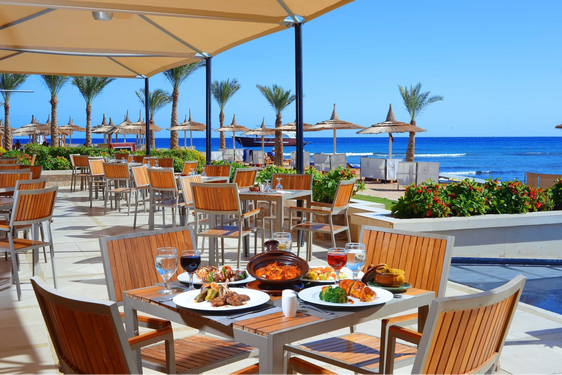 Намира се на 11 км. от летище Хургада, на 14 км. от центъра на Хургада, на брега на морето. Посторен през 1992 г., последно реновиран през 2011 г.