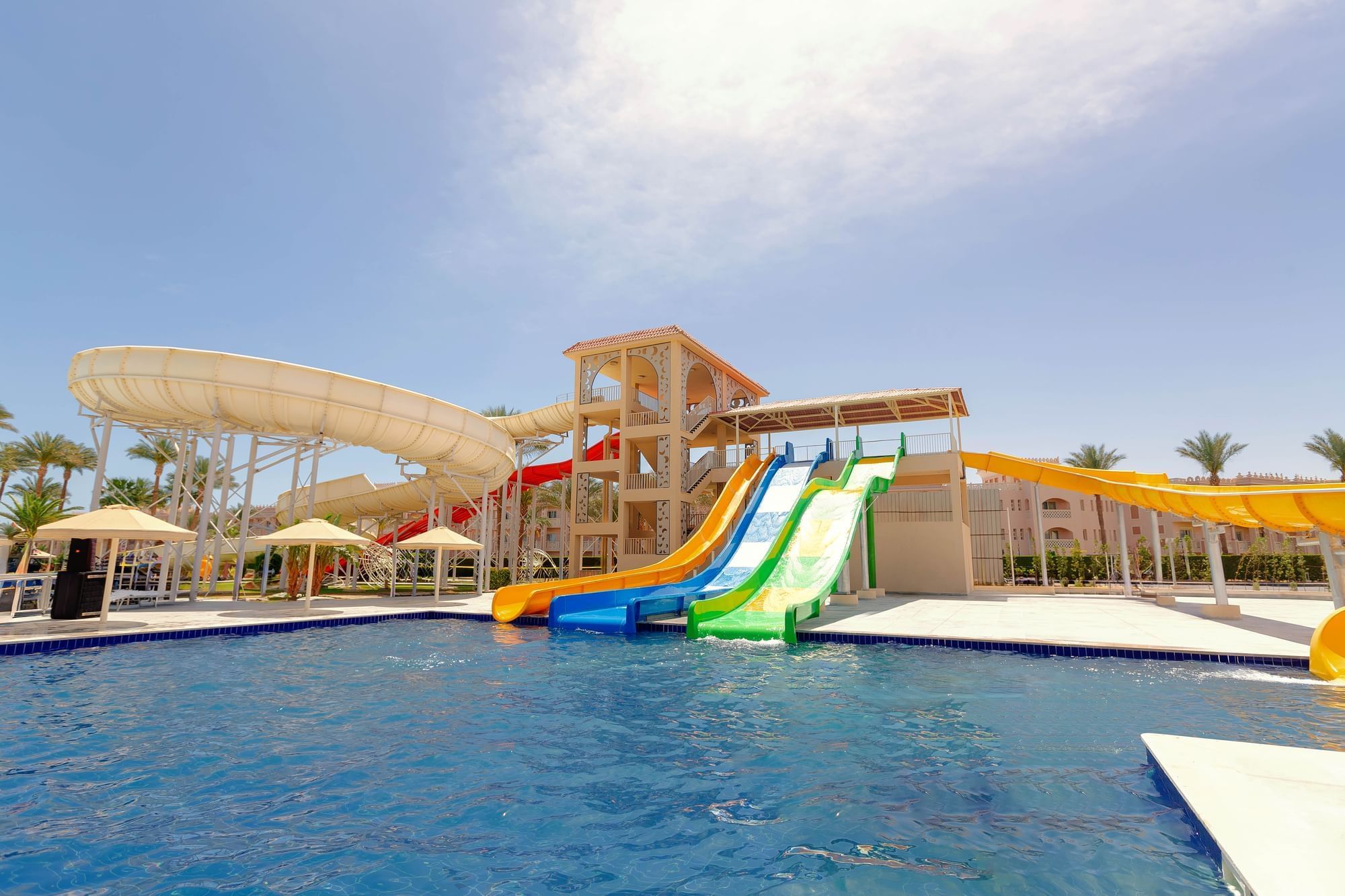 За още по-приятен и незабравим престой на гостите на Beach Albatros Resort и Albatros Palace Resort е открит нов аква парк, който включва 18 пързалки (11 за възрастни и 7 за деца) и 13 освежаващи басейна (5 отопляеми през зимата). Аква парка е разположен на територията на Beach Albatros Resort и ще се използва безплатно от гостите и на двата хотела.
