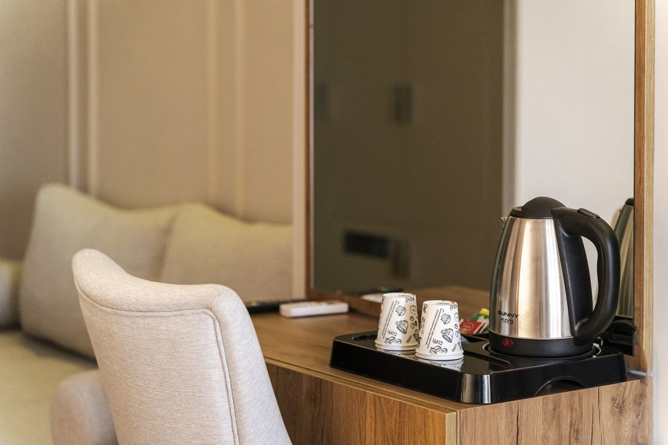 Всички стаи са оборудвани с климатик, телевизор, телефон, баня с душ, сешоар, мини бар (зарежда се еднократно с безалкохолни напитки и вода в деня на настаняване), сет за кафе/чай, сейф (безплатно), Wi-Fi, балкон.