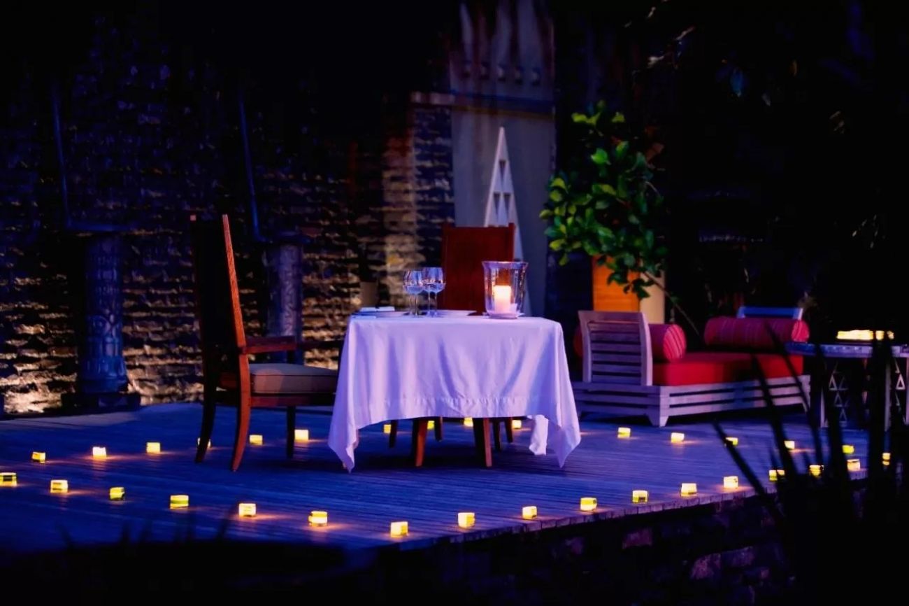 Гостите могат да се насладят на вечеря на свещи на плажа или на частно барбекю на терасата на вилата си. Ресторант Tec Tec предлага гурме кухня.