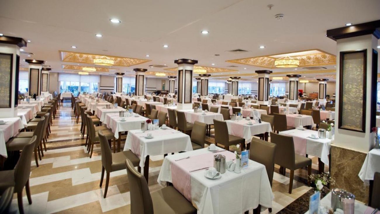 Главният ресторант в хотела сервира закуска на блок-маса от 07:00 до 10:00 часа, късна закуска от 10:00 до 11:00 часа, обяд на блок-маса от 12:30 до 14:30 часа и вечеря на блок-маса от 19:00 до 21:00 ч.