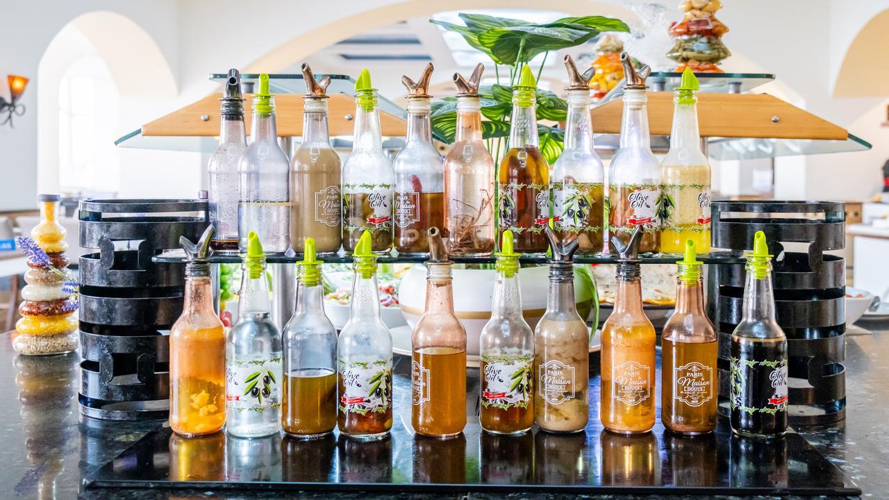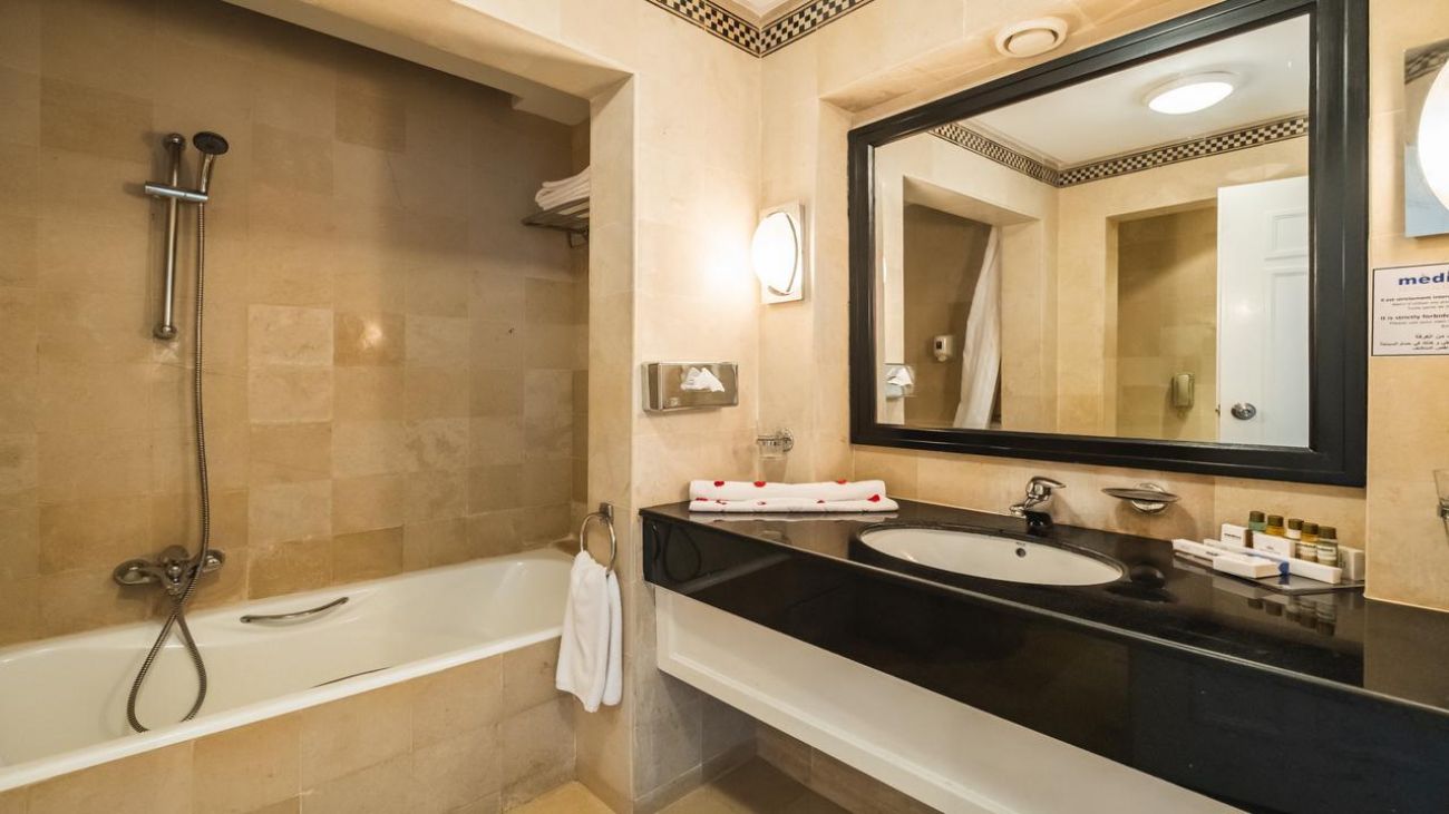 Основен ресторант OBlu, 4 тематични а ла карт ресторанта, всеки от които може да бъде посетен безплатно веднъж по време на престой след предварителна резервация (в хотел Medina Belisaire & Thalasso със средиземноморска кухня, в хотел Medina Diar Lemdina с мароканска кухня, в хотел Medina Solaria & Thalasso с италианска кухня, в ресторант Shaherezade” в хотел Medina Diar Lemdina с тематична вечеря 1001 нощи), снек ресторант, лоби бар, бар басейн, плажен бар, мавританско кафене, външен басейн, закрит басейн, денонощна рецепция, 5 конферентни зали, Таласо център, обмяна на валута, анимация.