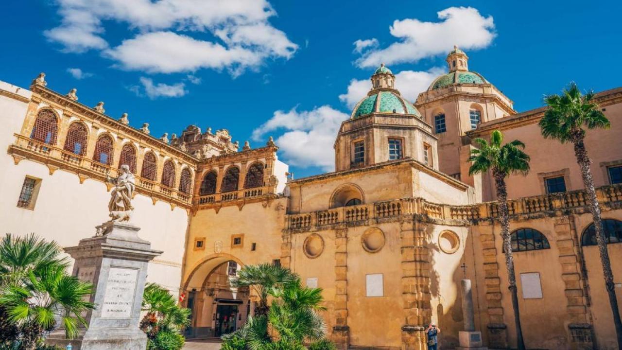 Туристическа програма с местен екскурзовод в столицата на Сицилия, гр. Палермо. В архитектурата на Палермо се смесват всички стилове, отразяващи заплетената и богата история на града. Това е единственото място в света, където са оставили белег всички основни Средиземноморски цивилизации – от финикийците, римляните, арабите и норманите, испанците и французите. Сърцето на Палермо е белязано от бароковото кръстовище „Куатро Канти”, непосредсвено до него се намира „Пиаца Претория” с „Фонтана на срама”, зад сградата на Общината е разположена църквата „Марторана”, където афрески, византийска мозайка и барок се сливат в хармоничен шедъовър. До „Марторана” се намира църквата „Свети Каталдо” – прекрасен пример за арабо-норманска архитектура.