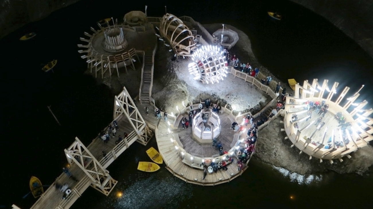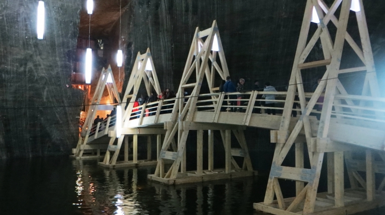 Отправяме към гр.Турда и солната мина. Да се спуснеш в солната мина Салина в Турда, Румъния е все едно да слезеш до центъра на земята. След разходка по входната галерия, чиито стени са покрити със солни кристали (сол е, няма нужда да близвате за проверка, ние вече го направихме!), следва поредица от галерии, сякаш излезли от фантастичните романи. Стените са в преливащи се нюанси на сивото или са покрити с бели кристали. Все едно виждате разрез на земната кора, както я рисуват в учебниците по география. В една от залите се лекуват (докато играят) деца - въздухът и солните изпарения са с медицински доказани ползи срещу алергии и заболявания на дихателната система. В друга можете да видите уреда "кривак" - задвижвана от коне система за пренасяне на солта от долните нива на мината нагоре към повърхността. В трета - Залата на ехото - под краката ви се спуска 112-метрова бездна. Ако извикате в нея, ще чуете кристално ясно ехо. Най-хубавата част обаче предстои. В едната зала има стълби надолу (Стълбите на богатите), които ви отвеждат до онази част на мината, заради която си струва да пропътувате целия път от България - големите подземните зали.